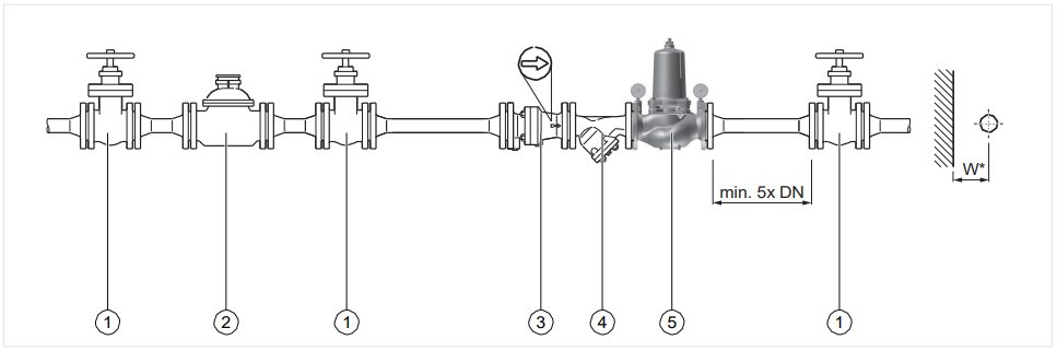 Fig. 1 Exemplu de instalare standard pentru reductorul de presiune